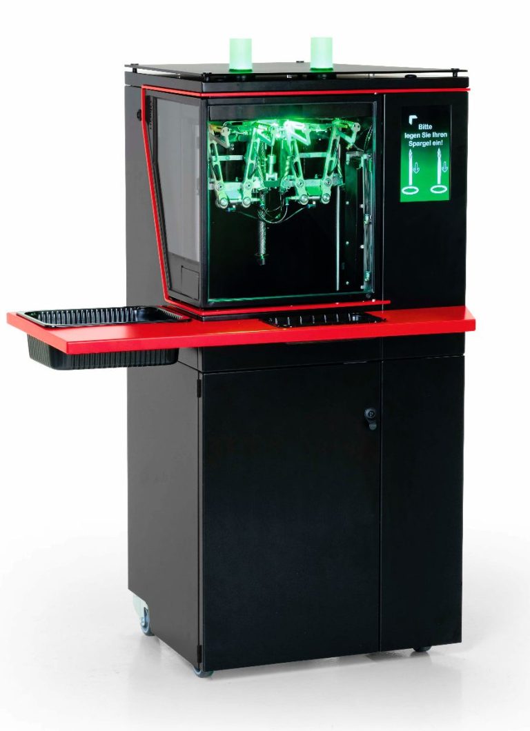 - seitliche Ausgabe des geschälten Spargels